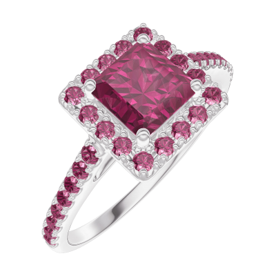 « L'ATELIER » Nº170364Bague Or blanc 9 carats - Rubis Princesse 0.5 carat - Halo Rubis - Sertissage Rubis 4.1 (10)