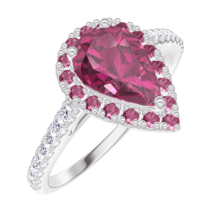 Bague Or blanc 18 carats - Rubis Poire 0.5 carat - Halo Rubis - Sertissage Diamant