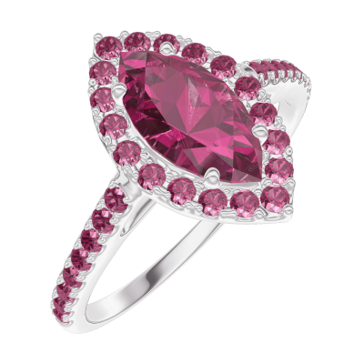 « L'ATELIER » Nº 170555Bague Or blanc 18 carats - Rubis Marquise 0.5 carat - Halo Rubis - Sertissage Rubis