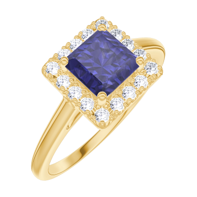 « L'ATELIER » Nº 170626Bague Or jaune 9 carats - Saphir bleu Princesse 0.5 carat - Halo Diamant 4.1 (10)