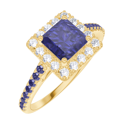 « L'ATELIER » Nº170638Bague Or jaune 9 carats - Saphir bleu Princesse 0.5 carat - Halo Diamant - Sertissage Saphir bleu 4.1 (10)