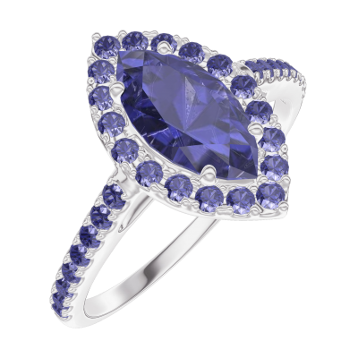 « L'ATELIER » Nº170863Bague Or blanc 18 carats - Saphir bleu Marquise 0.5 carat - Halo Saphir bleu - Sertissage Saphir bleu