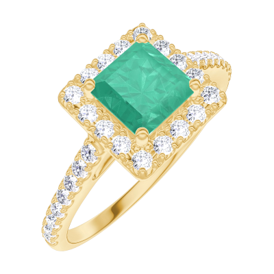 « L'ATELIER » Nº170918Bague Or jaune 9 carats - Émeraude Princesse 0.5 carat - Halo Diamant - Sertissage Diamant 4.1 (10)