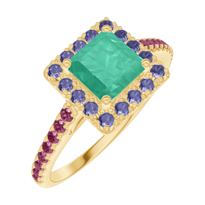 « L'ATELIER » Nº170953Bague Or jaune 18 carats - Émeraude Princesse 0.5 carat - Halo Saphir bleu - Sertissage Rubis 4.1 (10)