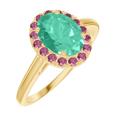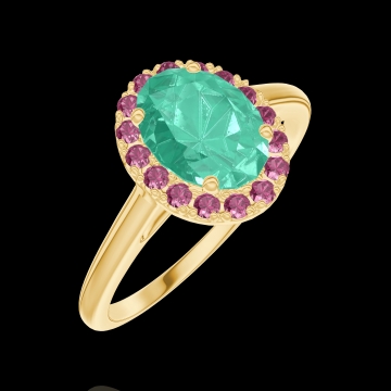 « L'ATELIER » Nº171025Bague Or jaune 18 carats - Émeraude Ovale 0.5 carat - Halo Rubis 4.5 (12)