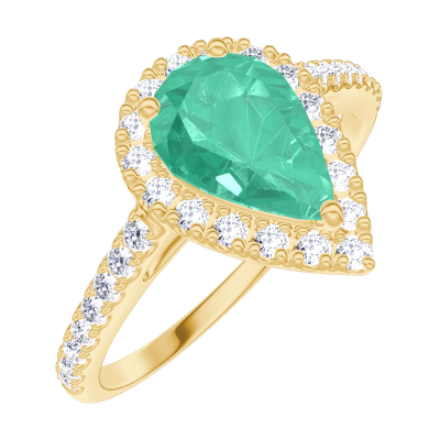 « L'ATELIER » Nº 171061Bague Or jaune 18 carats - Émeraude Poire 0.5 carat - Halo Diamant - Sertissage Diamant 4.8 (13)
