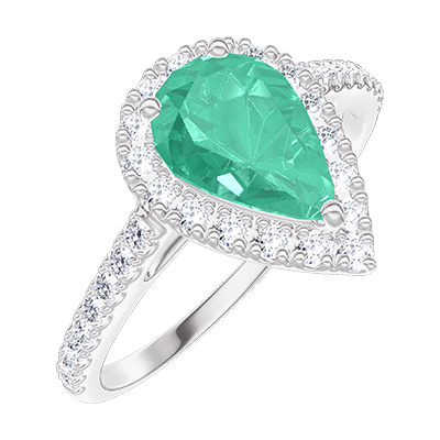 « L'ATELIER » Nº 171064Bague Or blanc 9 carats - Émeraude Poire 0.5 carat - Halo Diamant - Sertissage Diamant 4.8 (13)