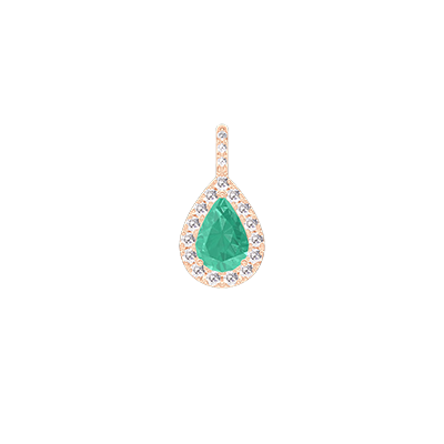 « L'ATELIER » Nº177591Pendentif Or rose 18 carats - Émeraude Poire 0.3 carat - Halo Diamant - Sertissage Diamant - Pas de chaîne