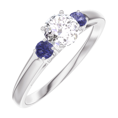 « L'ATELIER » Nº 180063Bague Or blanc 18 carats - Diamant synthétique Rond 0.3 carat - Pierres de côté Saphir bleu 4.5 (36)