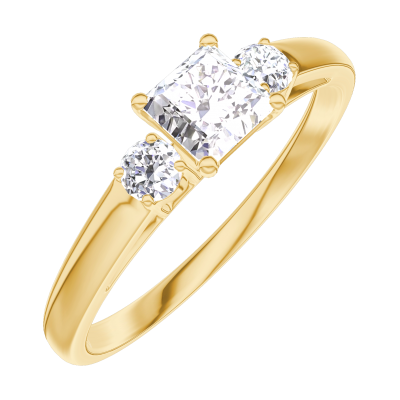 « L'ATELIER » Nº 180121Bague Or jaune 18 carats - Diamant synthétique Princesse 0.3 carat - Pierres de côté Diamant synthétique