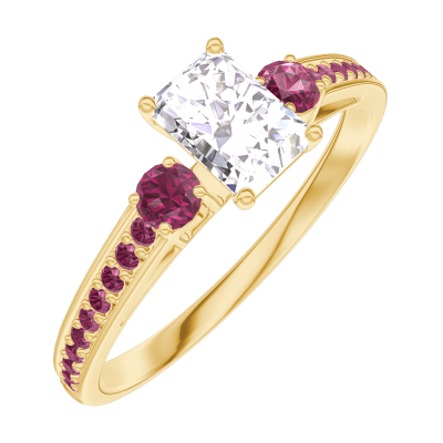 « L'ATELIER » Nº180250Bague Or jaune 9 carats - Diamant synthétique Rectangle 0.3 carat - Pierres de côté Rubis - Sertissage Rubis