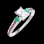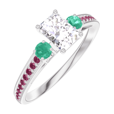 « L'ATELIER » Nº 180292Bague Or blanc 9 carats - Diamant synthétique Rectangle 0.3 carat - Pierres de côté Émeraude - Sertissage Rubis