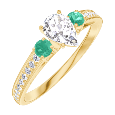 « L'ATELIER » Nº180485Bague Or jaune 18 carats - Diamant synthétique Poire 0.3 carat - Pierres de côté Émeraude - Sertissage Diamant synthétique