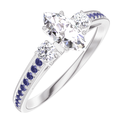 « L'ATELIER » Nº180536Bague Or blanc 9 carats - Diamant synthétique Marquise 0.3 carat - Pierres de côté Diamant synthétique - Sertissage Saphir bleu
