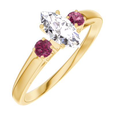 « L'ATELIER » Nº180542Bague Or jaune 9 carats - Diamant synthétique Marquise 0.3 carat - Pierres de côté Rubis