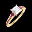 Bague Or jaune 18 carats - Diamant synthétique Princesse 0.5 carat - Pierres de côté Rubis - Sertissage Rubis