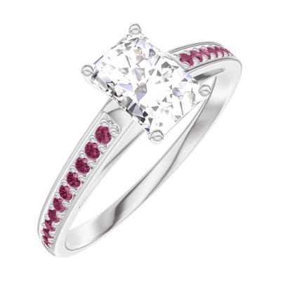 « L'ATELIER » Nº182611Bague Or blanc 18 carats - Diamant synthétique Rectangle 0.5 carat - Sertissage Rubis