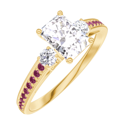 « L'ATELIER » Nº 182630Bague Or jaune 9 carats - Diamant synthétique Rectangle 0.5 carat - Pierres de côté Diamant synthétique - Sertissage Rubis
