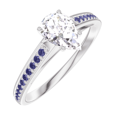 « L'ATELIER » Nº182815Bague Or blanc 18 carats - Diamant synthétique Poire 0.5 carat - Sertissage Saphir bleu