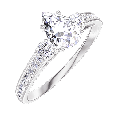 « L'ATELIER » Nº 182827Bague Or blanc 18 carats - Diamant synthétique Poire 0.5 carat - Pierres de côté Diamant synthétique - Sertissage Diamant synthétique