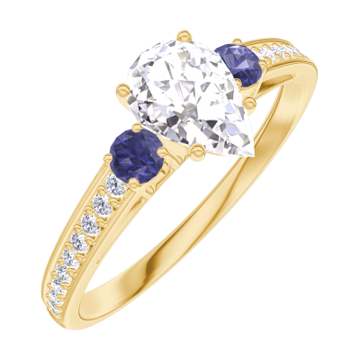 « L'ATELIER » Nº182865Bague Or jaune 18 carats - Diamant synthétique Poire 0.5 carat - Pierres de côté Saphir bleu - Sertissage Diamant synthétique