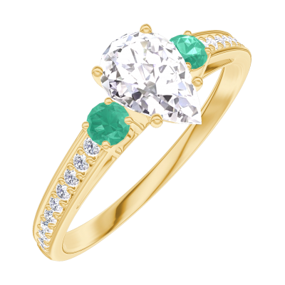 « L'ATELIER » Nº182885Bague Or jaune 18 carats - Diamant synthétique Poire 0.5 carat - Pierres de côté Émeraude - Sertissage Diamant synthétique