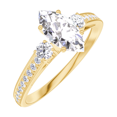 « L'ATELIER » Nº 182926Bague Or jaune 9 carats - Diamant synthétique Marquise 0.5 carat - Pierres de côté Diamant synthétique - Sertissage Diamant synthétique