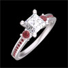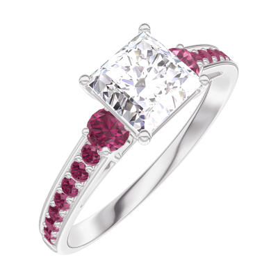 « L'ATELIER » Nº184952Bague Or blanc 9 carats - Diamant synthétique Princesse 0.7 carat - Pierres de côté Rubis - Sertissage Rubis