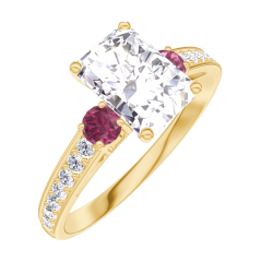 « L'ATELIER » Nº 185046Bague Or jaune 9 carats - Diamant synthétique Rectangle 0.7 carat - Pierres de côté Rubis - Sertissage Diamant synthétique