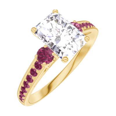« L'ATELIER » Nº185050Bague Or jaune 9 carats - Diamant synthétique Rectangle 0.7 carat - Pierres de côté Rubis - Sertissage Rubis