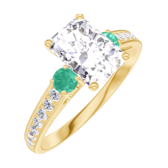« L'ATELIER » Nº 185086Bague Or jaune 9 carats - Diamant synthétique Rectangle 0.7 carat - Pierres de côté Émeraude - Sertissage Diamant synthétique