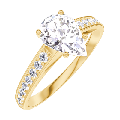 « L'ATELIER » Nº 185206Bague Or jaune 9 carats - Diamant synthétique Poire 0.7 carat - Sertissage Diamant synthétique