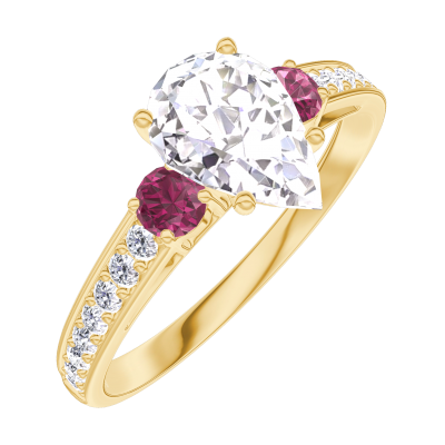 « L'ATELIER » Nº185246Bague Or jaune 9 carats - Diamant synthétique Poire 0.7 carat - Pierres de côté Rubis - Sertissage Diamant synthétique