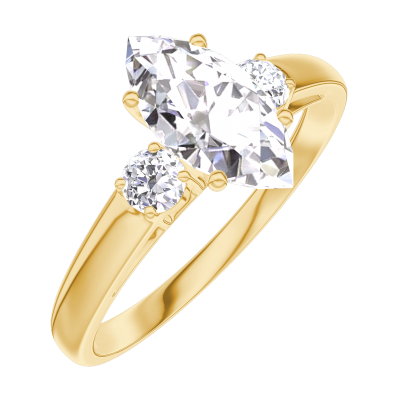 « L'ATELIER » Nº185322Bague Or jaune 9 carats - Diamant synthétique Marquise 0.7 carat - Pierres de côté Diamant synthétique
