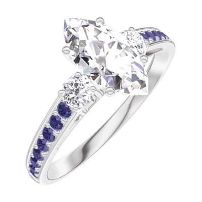 « L'ATELIER » Nº185336Bague Or blanc 9 carats - Diamant synthétique Marquise 0.7 carat - Pierres de côté Diamant synthétique - Sertissage Saphir bleu