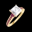Bague Or jaune 18 carats - Diamant synthétique Princesse 1 carat - Pierres de côté Rubis - Sertissage Rubis