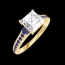 Bague Or jaune 9 carats - Diamant synthétique Princesse 1 carat - Pierres de côté Saphir bleu - Sertissage Saphir bleu