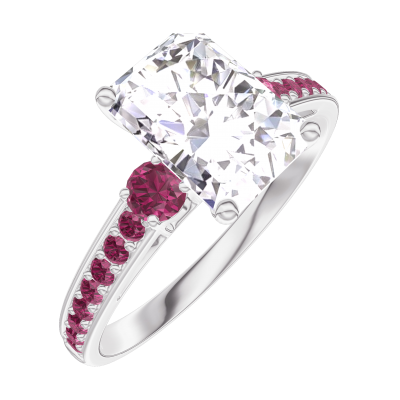 « L'ATELIER » Nº 187451Bague Or blanc 18 carats - Diamant synthétique Rectangle 1 carat - Pierres de côté Rubis - Sertissage Rubis 4.4