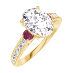 Pourquoi nous faire confiance ? « L'ATELIER » Nº 187545 Bague Or jaune 18 carats - Diamant synthétique Ovale 1 carat - Pierres de côté Rubis - Sertissage Diamant synthétique