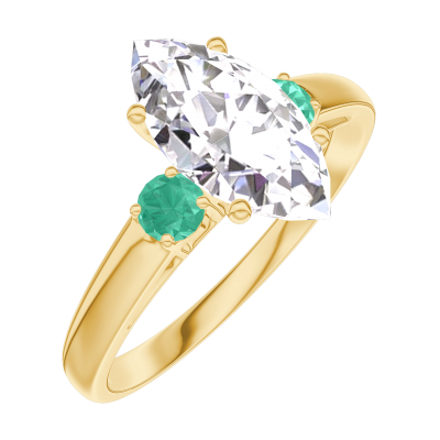 « L'ATELIER » Nº187782Bague Or jaune 9 carats - Diamant synthétique Marquise 1 carat - Pierres de côté Émeraude