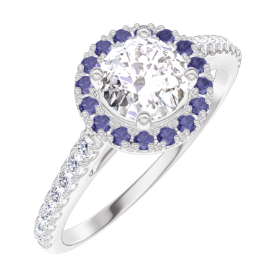 « L'ATELIER » Nº 190040Bague Or blanc 9 carats - Diamant synthétique Rond 0.5 carat - Halo Saphir bleu - Sertissage Diamant synthétique 4.7 (18)