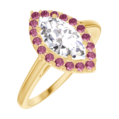 « L'ATELIER » Nº190257Bague Or jaune 18 carats - Diamant synthétique Marquise 0.5 carat - Halo Rubis