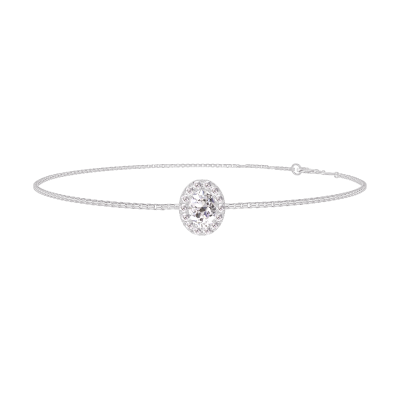 « L'ATELIER » Nº200112Bracelet Or blanc 9 carats - Diamant Ovale 0.3 carat - Halo Diamant - Chaîne Vénitienne