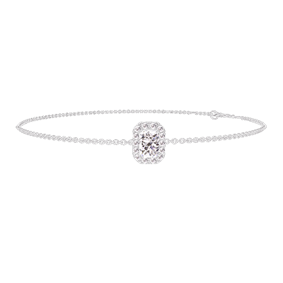 « L'ATELIER » Nº 200268Bracelet Or blanc 9 carats - Diamant synthétique Rectangle 0.3 carat - Halo Diamant synthétique - Chaîne Forçat