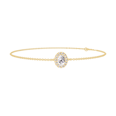 « L'ATELIER » Nº 200298Bracelet Or jaune 9 carats - Diamant synthétique Ovale 0.3 carat - Halo Diamant synthétique - Chaîne Forçat