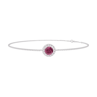 « L'ATELIER » Nº200400Bracelet Or blanc 9 carats - Rubis Rond 0.3 carat - Halo Diamant - Chaîne Vénitienne 4.7 (3)