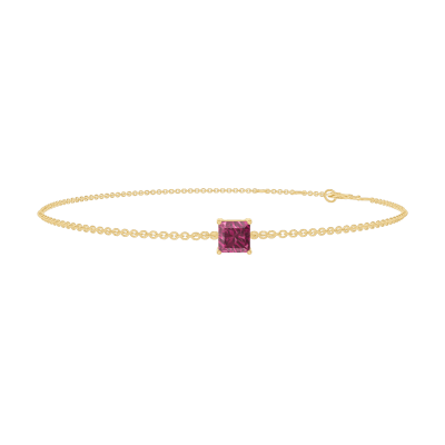 « L'ATELIER » Nº200418Bracelet Or jaune 9 carats - Rubis Princesse 0.3 carat - Chaîne Forçat