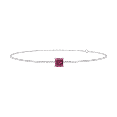 « L'ATELIER » Nº 200424Bracelet Or blanc 9 carats - Rubis Princesse 0.3 carat - Chaîne Vénitienne