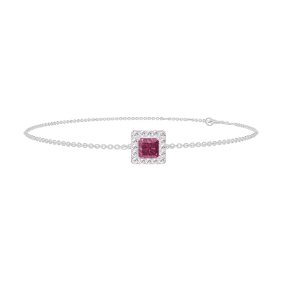 « L'ATELIER » Nº200427Bracelet Or blanc 18 carats - Rubis Princesse 0.3 carat - Halo Diamant - Chaîne Forçat