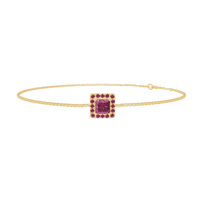 « L'ATELIER » Nº 200437Bracelet Or jaune 18 carats - Rubis Princesse 0.3 carat - Halo Rubis - Chaîne Vénitienne